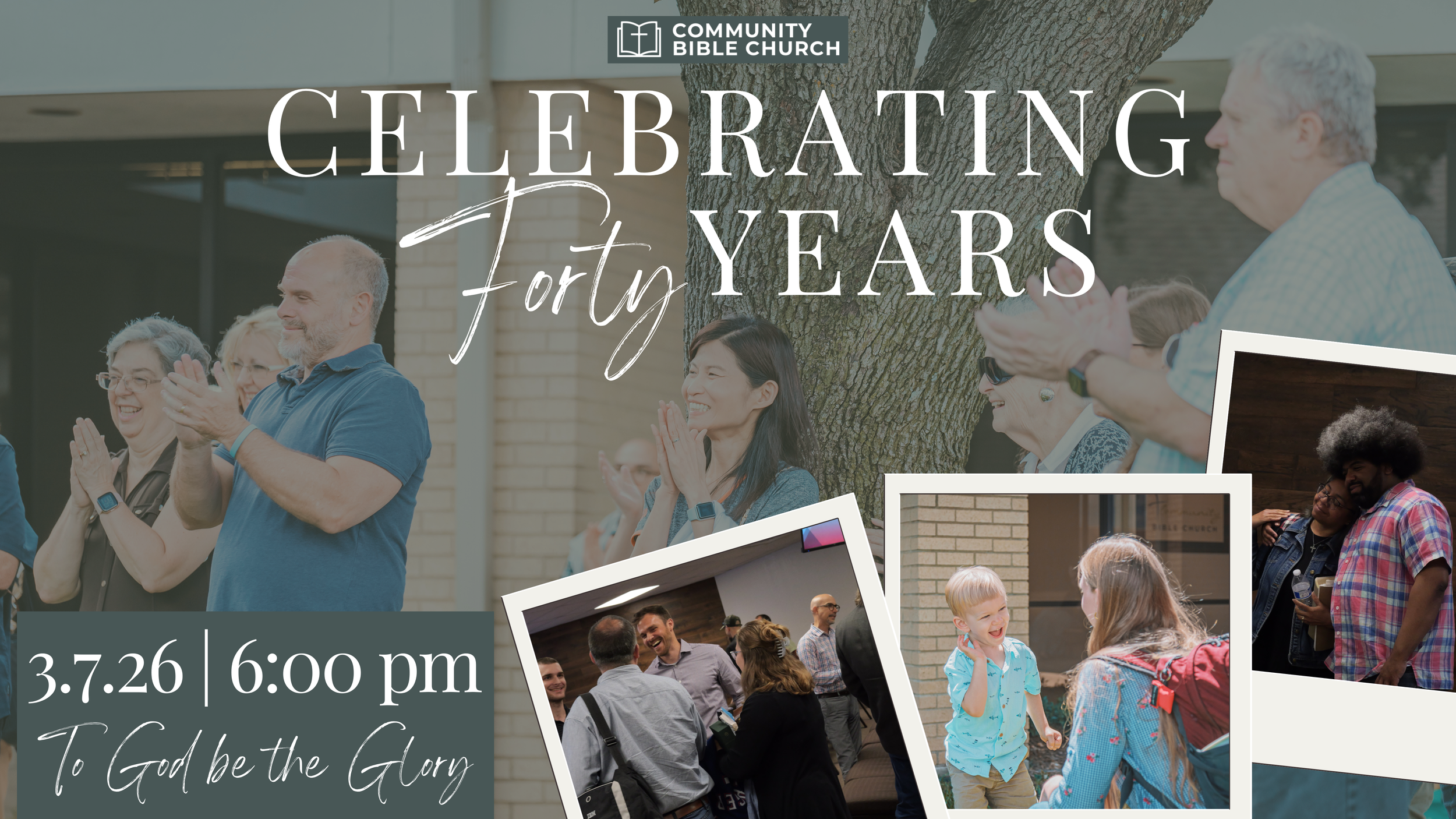Community Bible Church’s 40th anniversary celebration is on March 7th! We are thankful to God for the gift of being a church family for these past 40 years - He has been so faithful, and this celebration is our opportunity to praise Him for all He has done. As we look back at 40 years of God carrying us through the joys and trials that come with living life together on mission for His Kingdom, we also look forward in prayer to what He will do in the future. “For from Him, and through Him, and to Him are all things. To Him be the glory forever. Amen.” - Romans 11:36